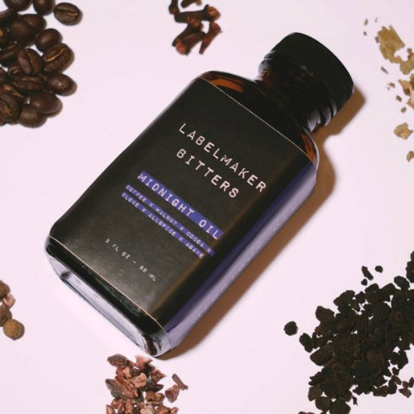 Midnight Oil: Coffee & walnut bitters with hints of cocoa, clove, allspice, and agave. Perfect addition to a nightcap when burning that midnight oil.